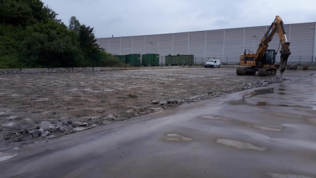 Bestaande verharding van onze koer is opgebroken om plaats te maken voor de nieuwe loods. Het hemelwater van de loods wordt opgevangen door drie regenputten. Deze putten vergroten de capaciteit aan sanitair regenwater op onze site Veer 5.